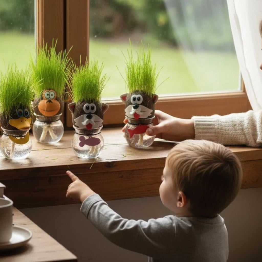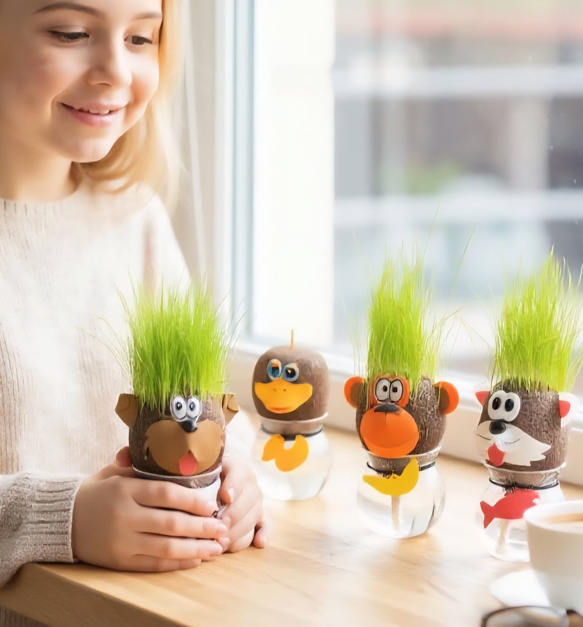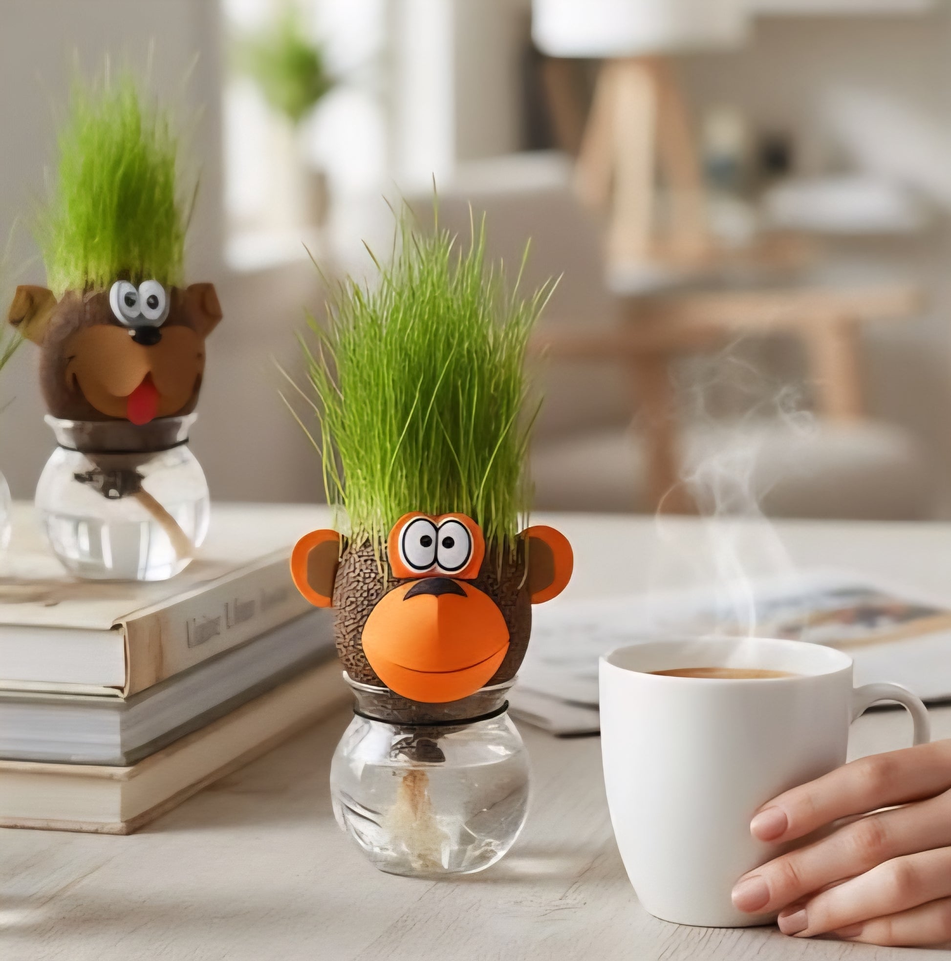 Faites du jardinage une aventure amusante avec nos têtes de gazon vivant !