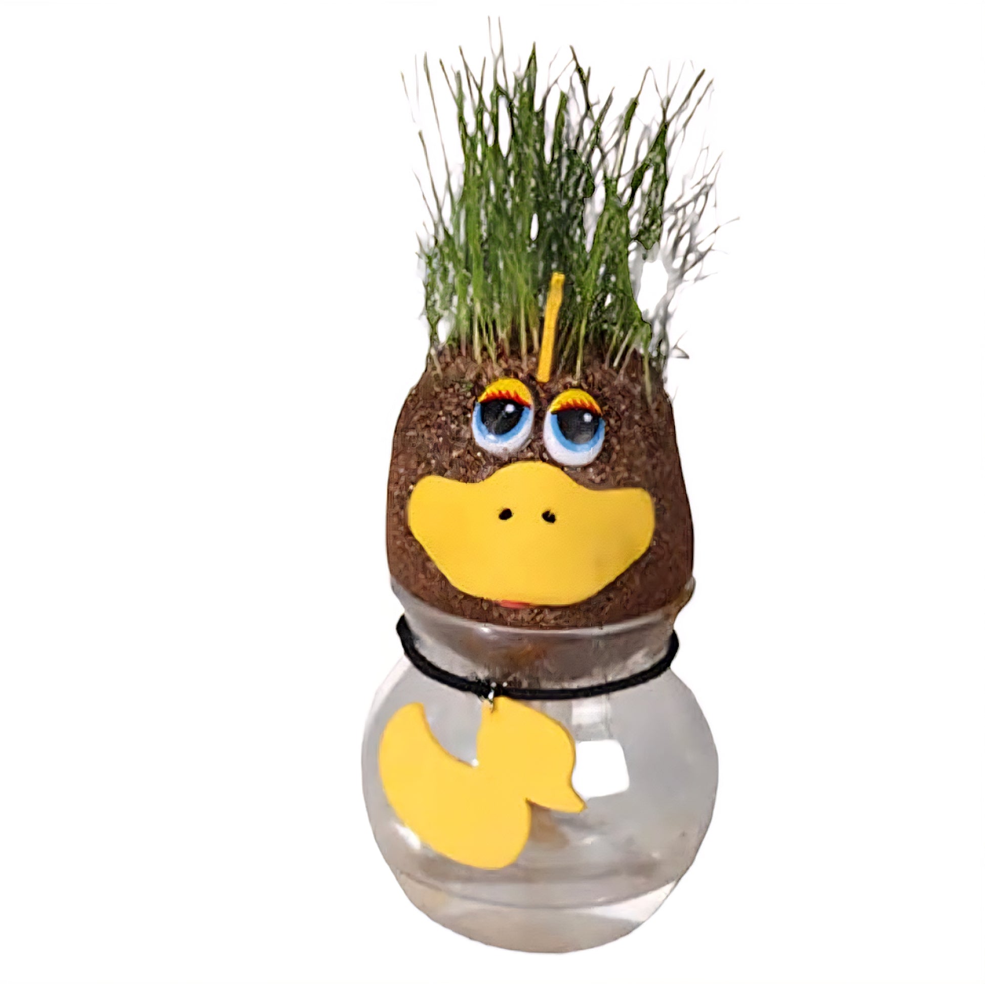 Remplissez simplement le vase d'eau et laissez la magie opérer. En quelques jours, vous verrez les "cheveux" verts grandir et s'épanouir sur la tête de votre animal. Une fois la croissance terminée, amusez-vous à coiffer et à couper l'herbe selon vos envies !