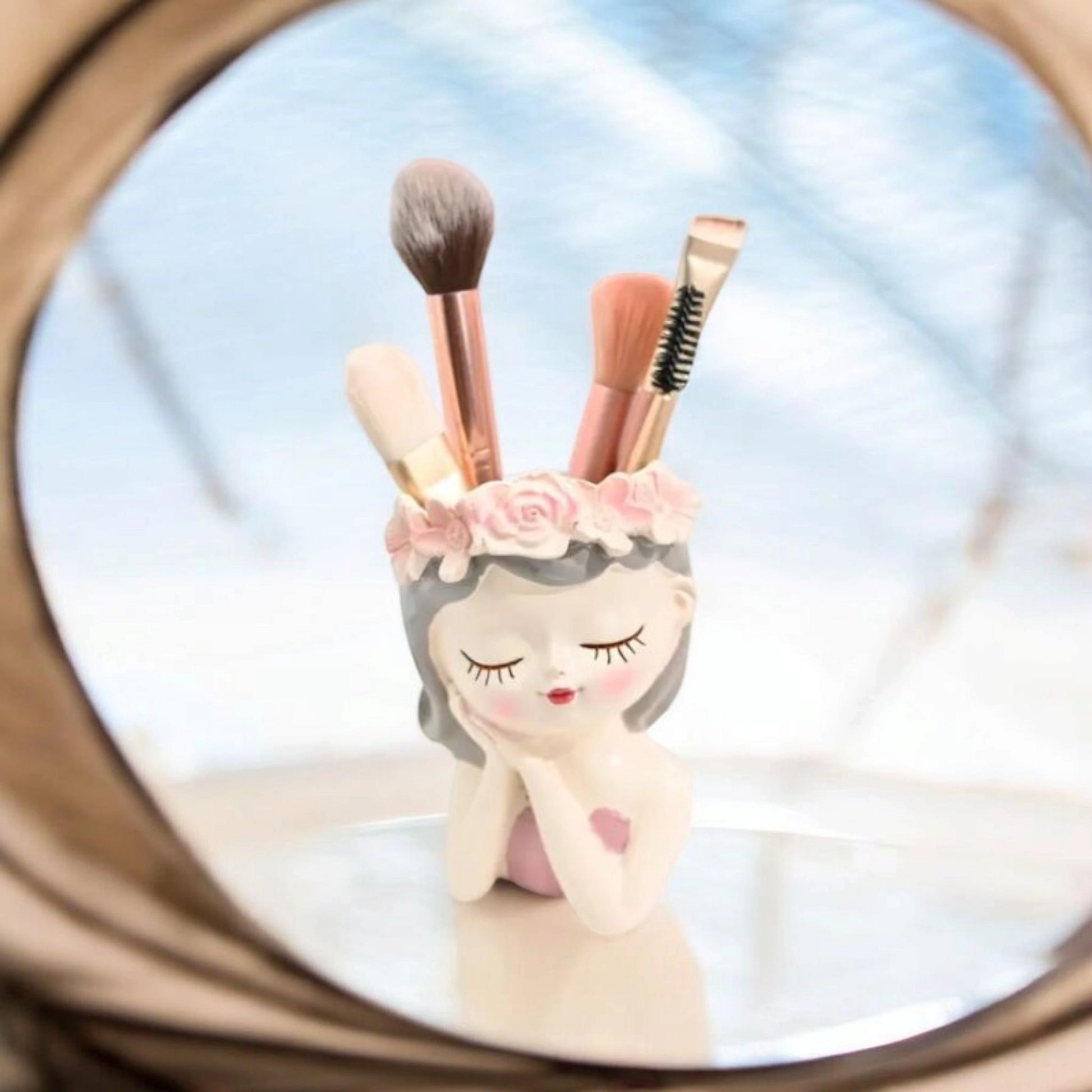 Pot de fleurs, vase ou pot à stylos ou pinceaux de maquillage.