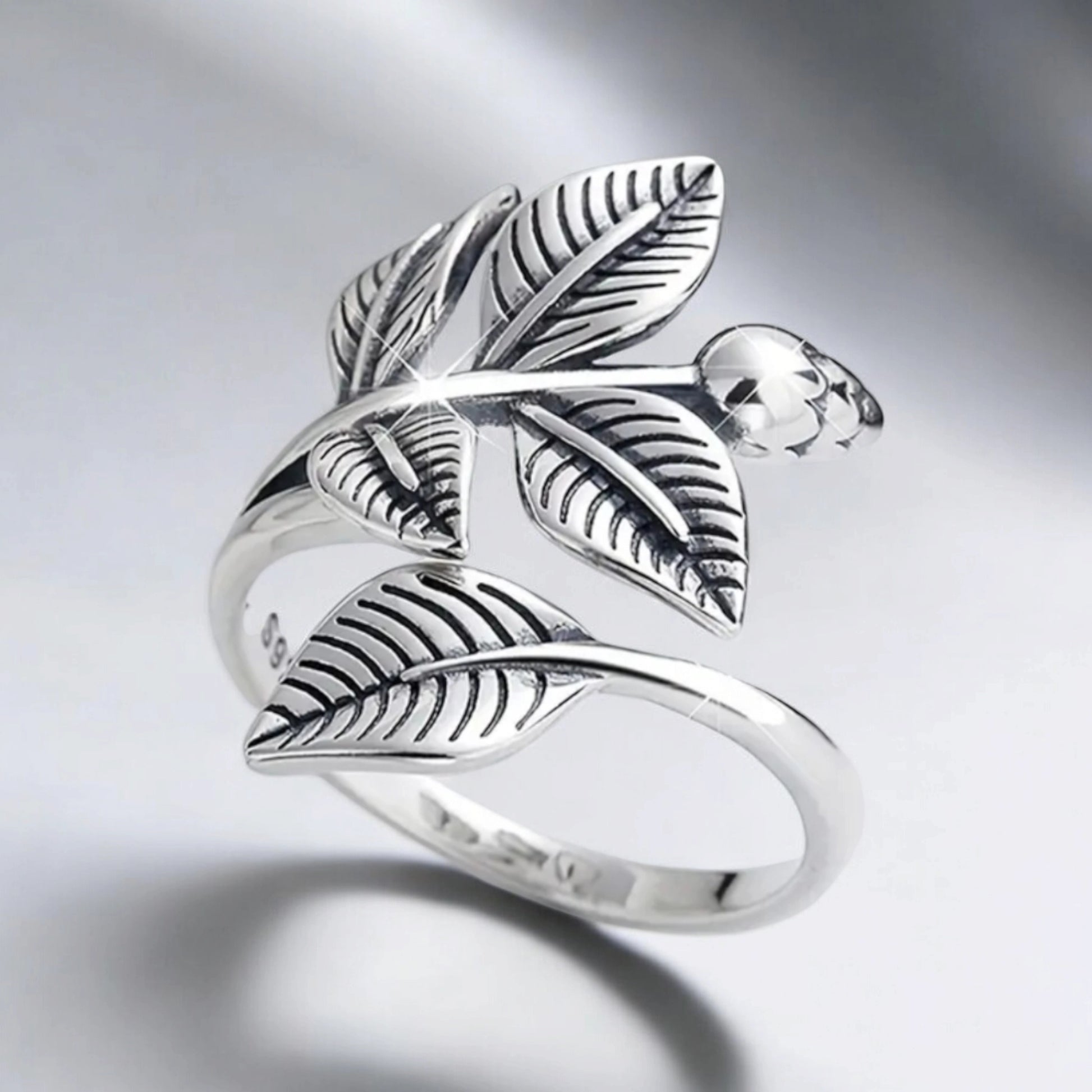 JENNY est une bague en argent représentant des feuilles et un bourgeon, symbole de la renaissance et de la fécondité.