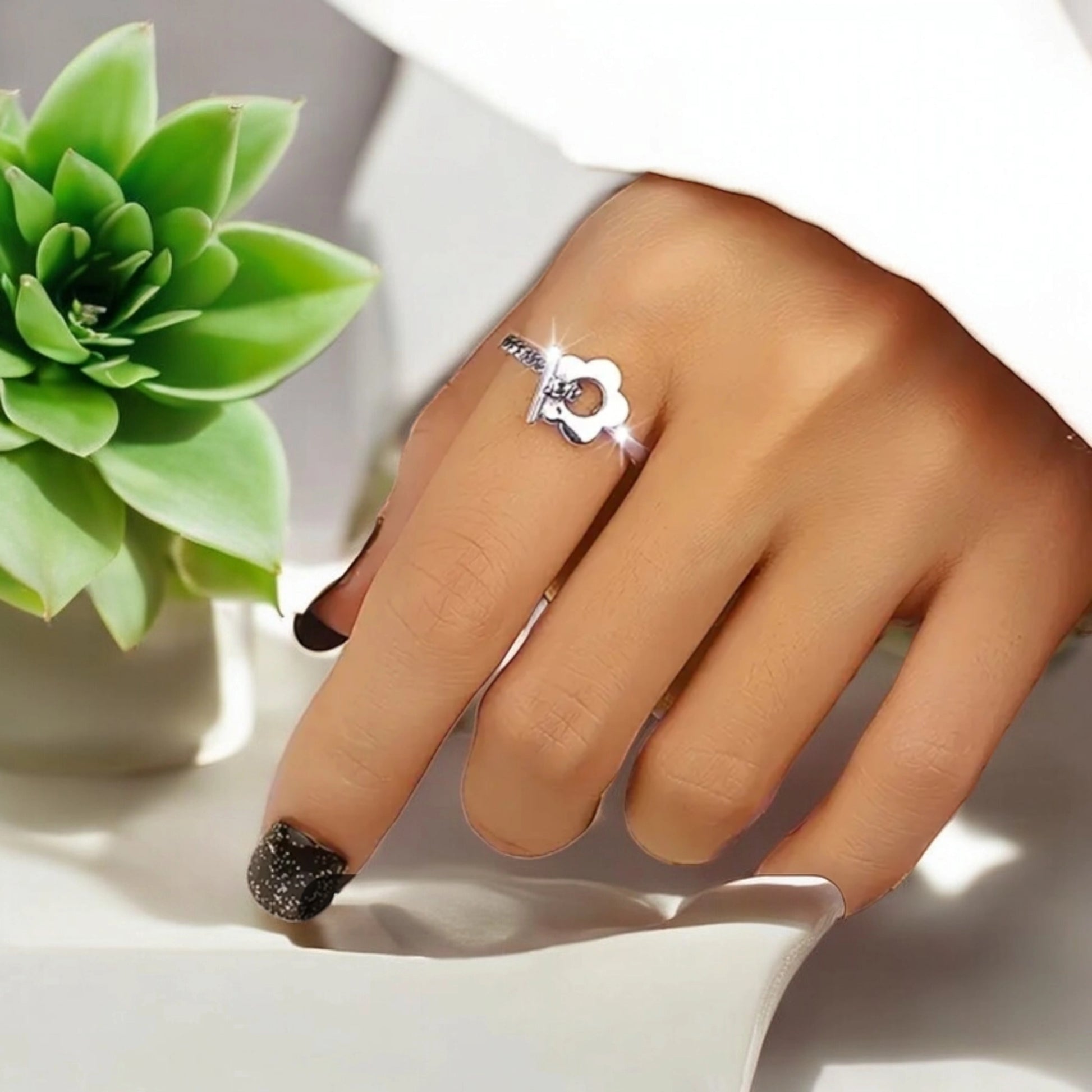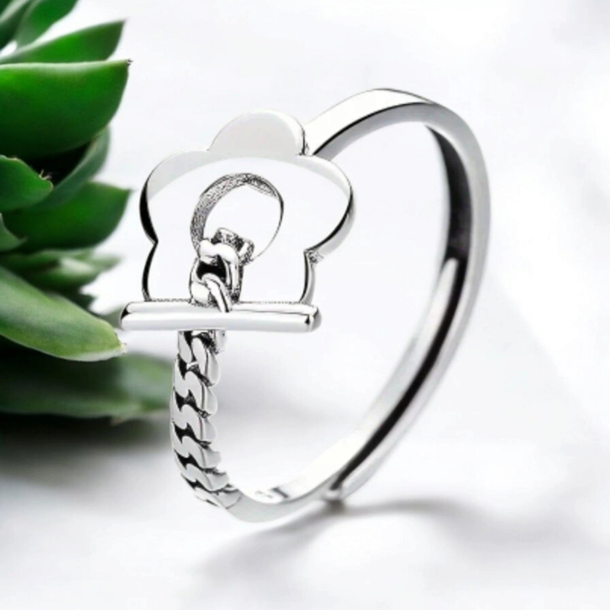 LÉA est une bague fleurie en argent 925. Symbole de l'attachement, elle est ajustable et s'adapte à toutes les tailles de doigts.