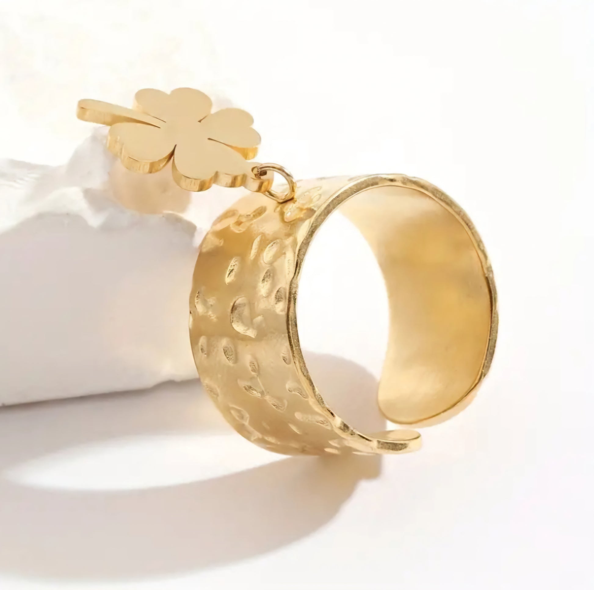 Bague à breloque trèfle à quatre feuilles doré