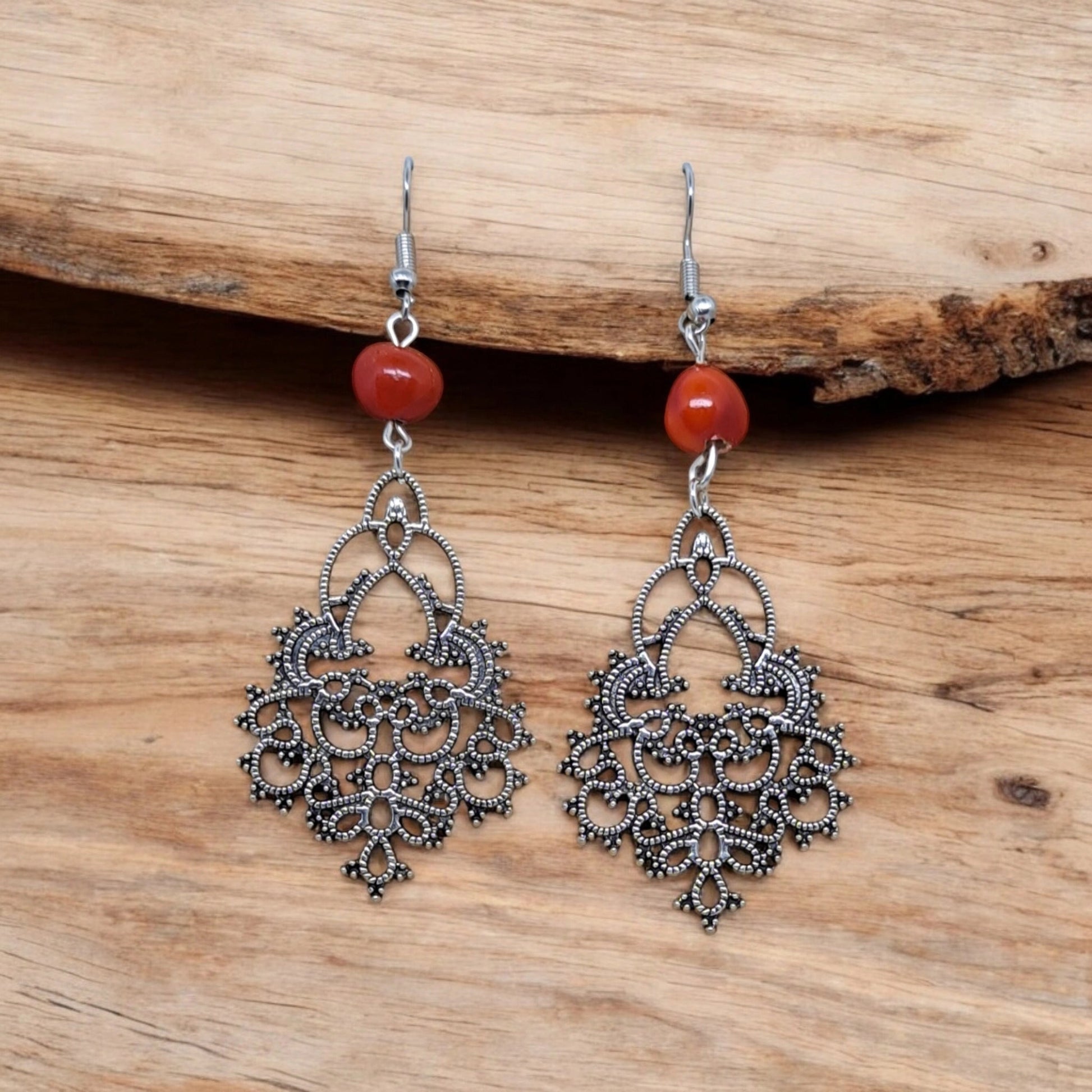 Mélange de fioritures argentées et de graines d'Église de la Réunion pour ces boucles d'oreilles ESTHER à porter en toutes occasions.