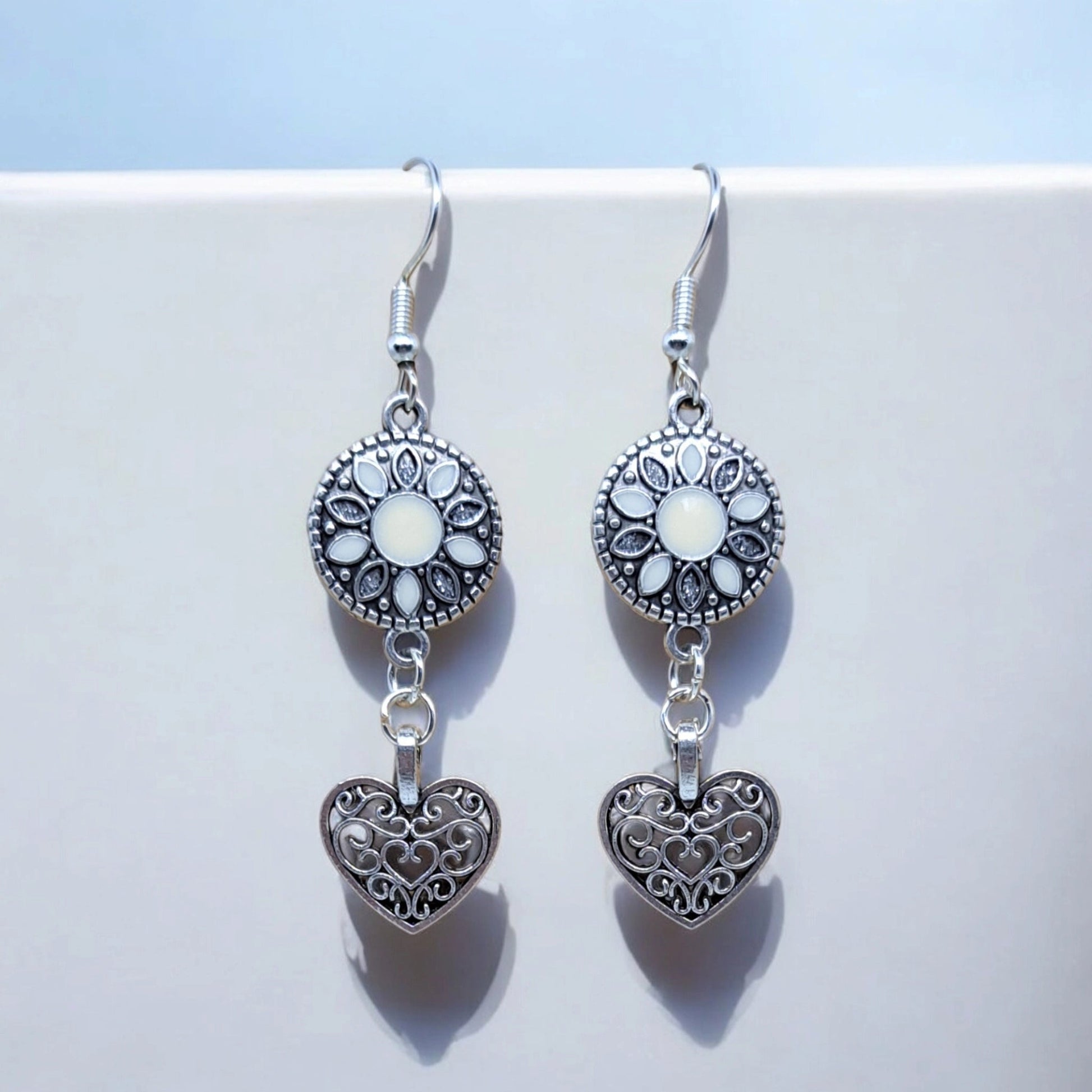 BOUCLES D'OREILLES FLEURS ET CŒUR SUZY