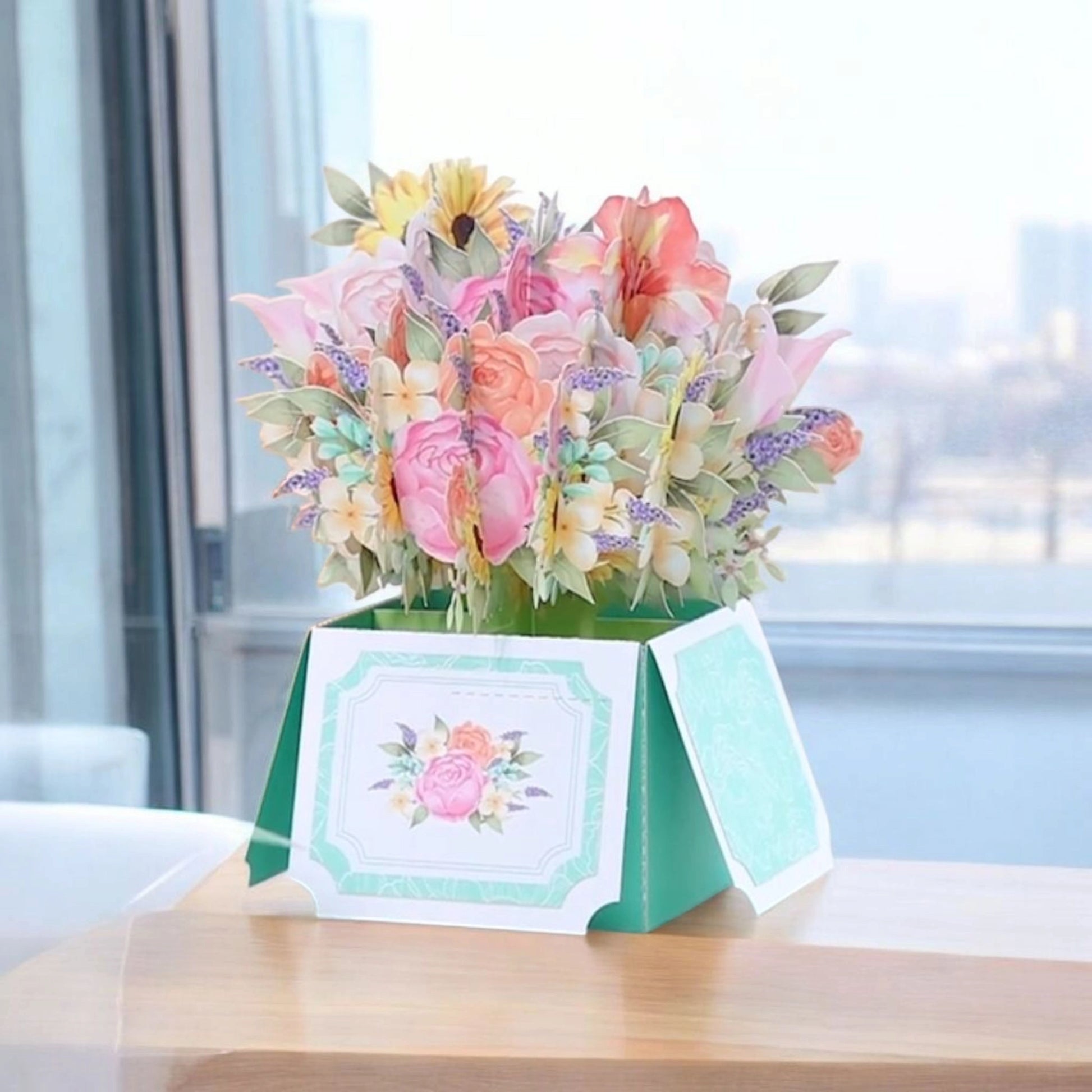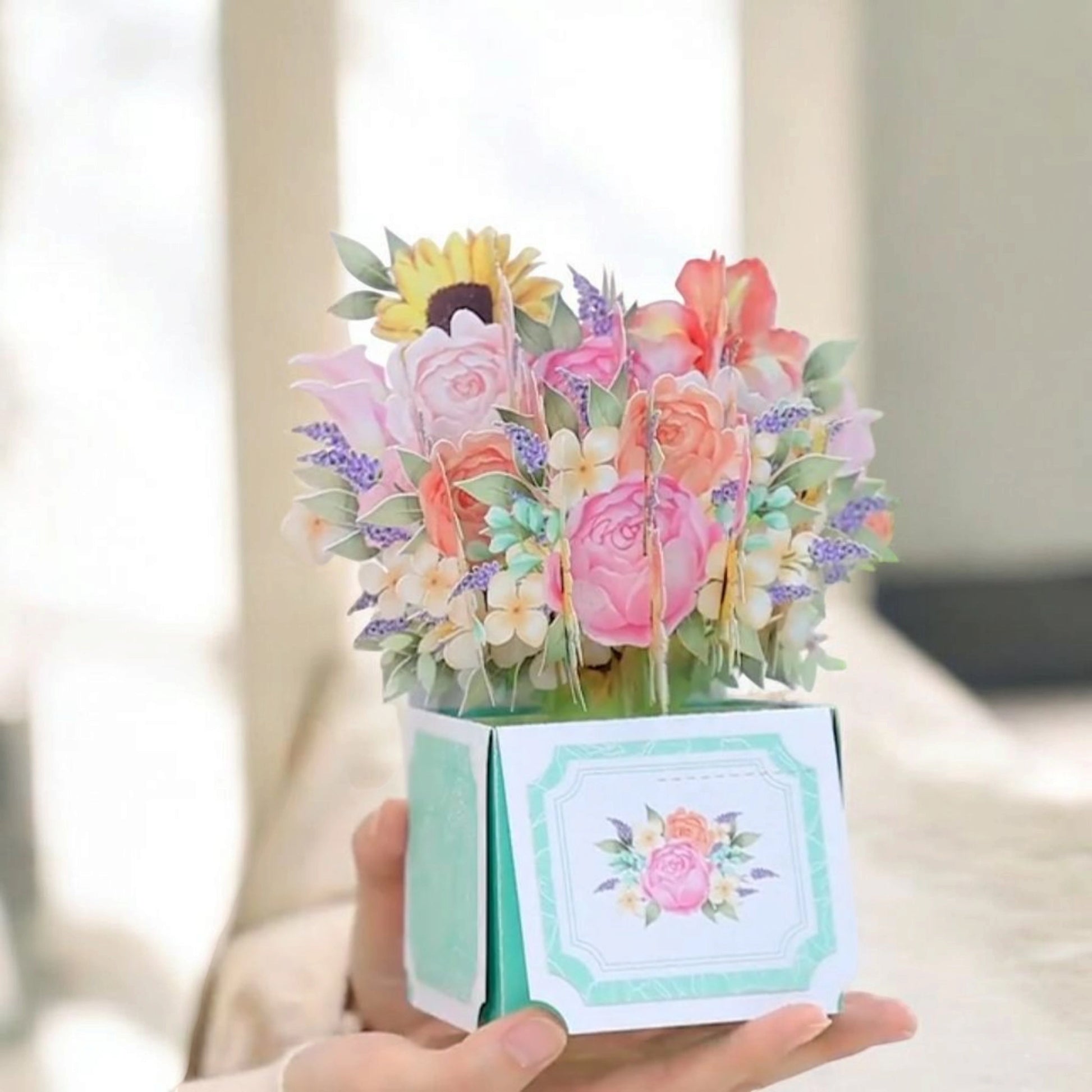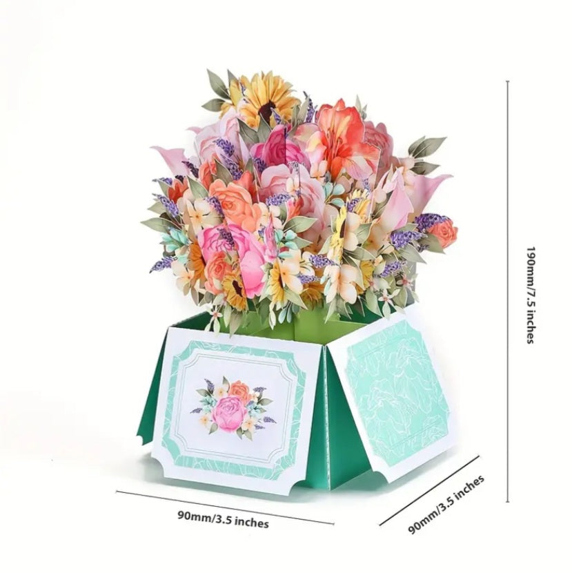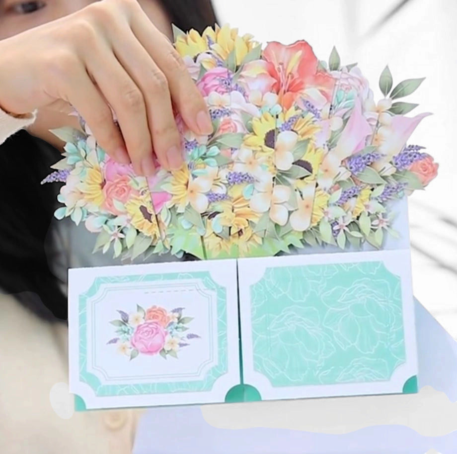 Surprenez vos proches avec cette carte pop-up unique en forme de bouquet de fleurs. Idéale pour de nombreuses occasions, elle combine l'art de la papeterie avec la beauté des fleurs pour offrir un cadeau original.