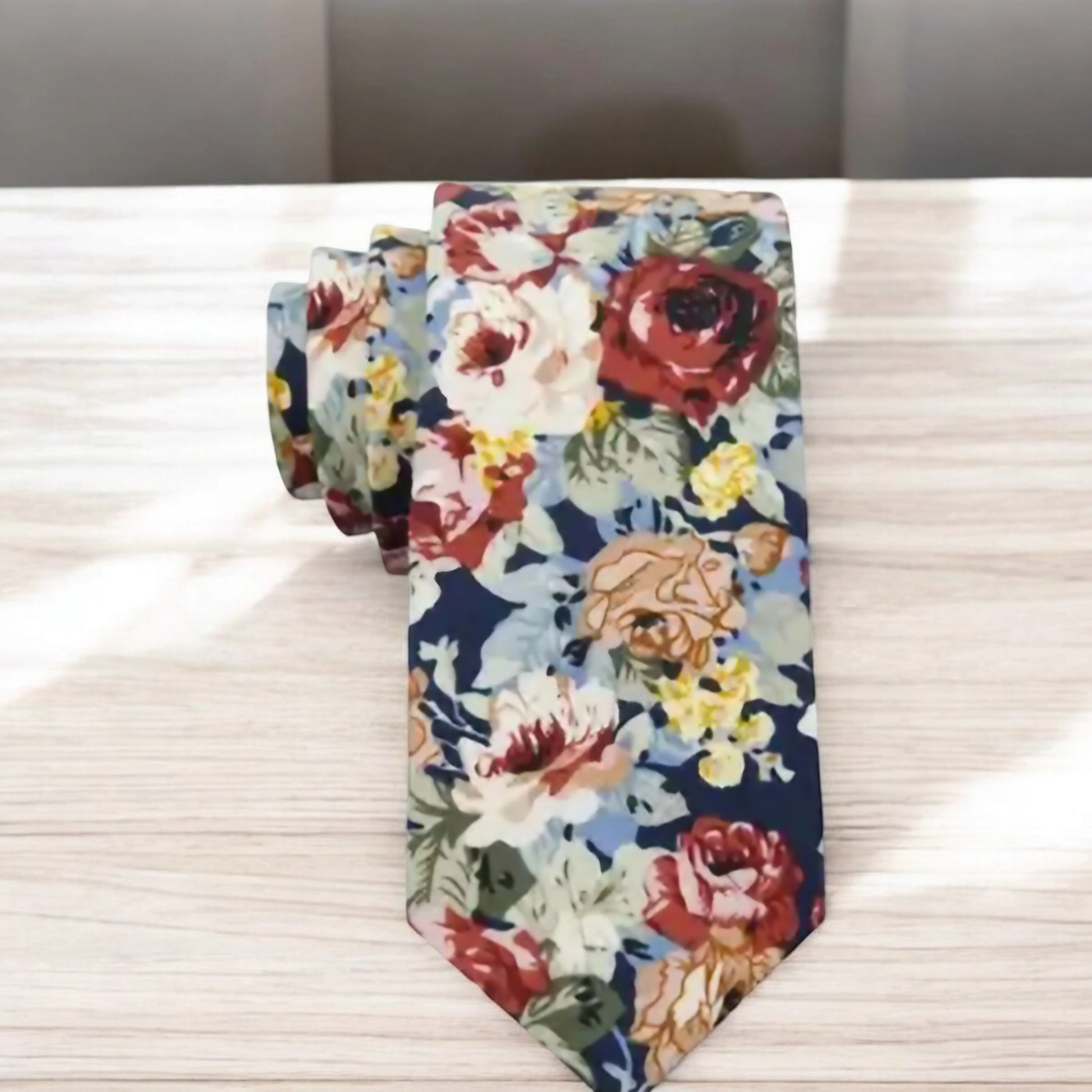 100% coton, cette cravate originale se ferme en effectuant le noeud traditionnel.