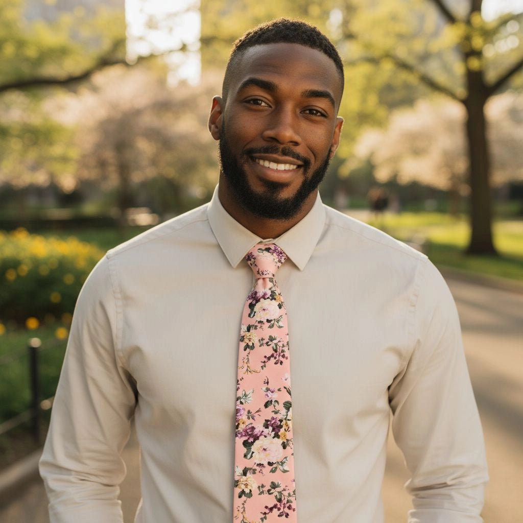 Cette cravate florale en rose doux est conçue pour ceux qui souhaitent allier style et originalité.