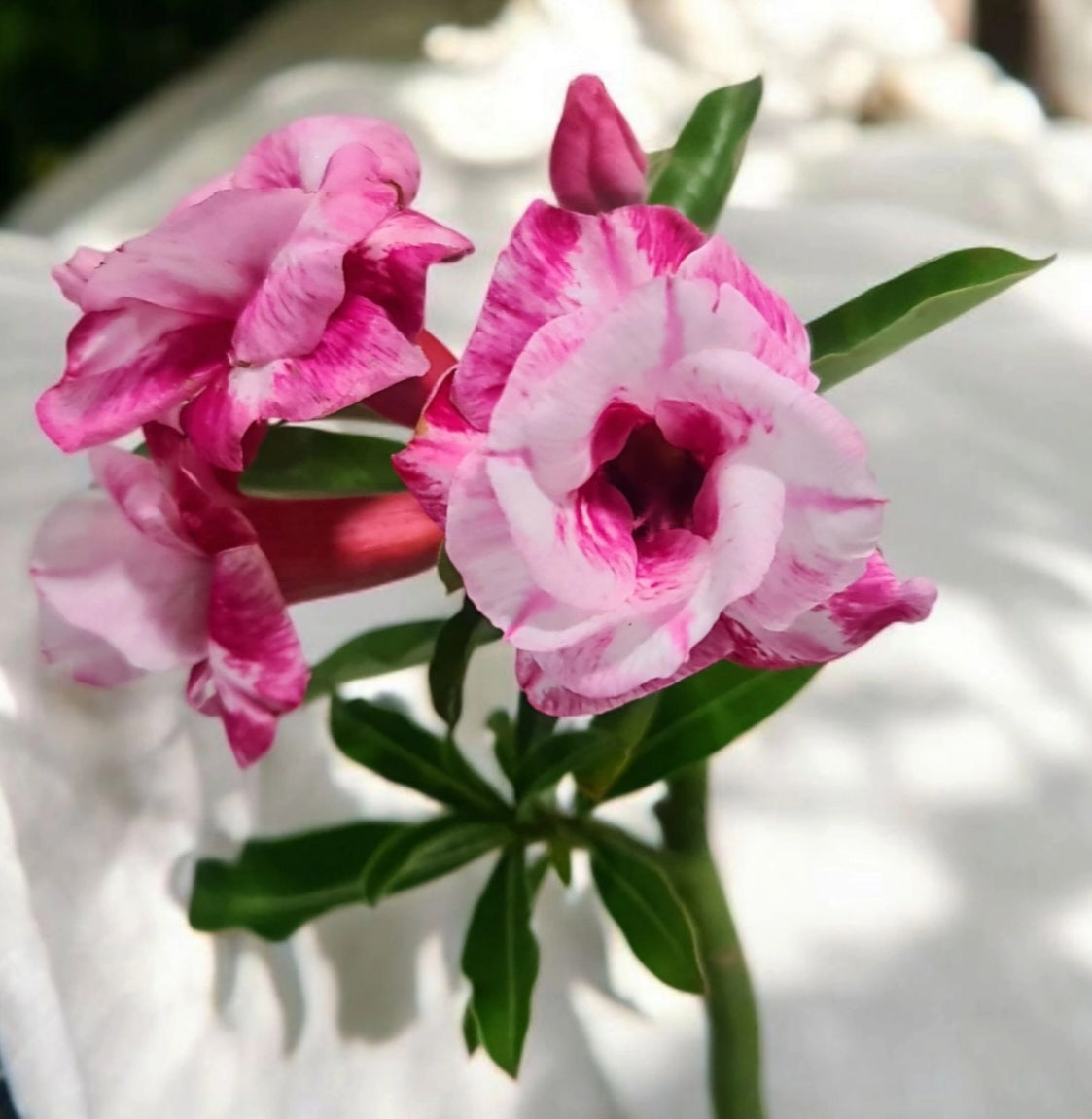 L'Adenium Obesum, communément appelée "Rose du désert" ou "Faux Baobab", est une plante succulente originaire des régions d'Afrique et du Moyen-Orient, célèbre pour ses magnifiques fleurs en forme de trompette.