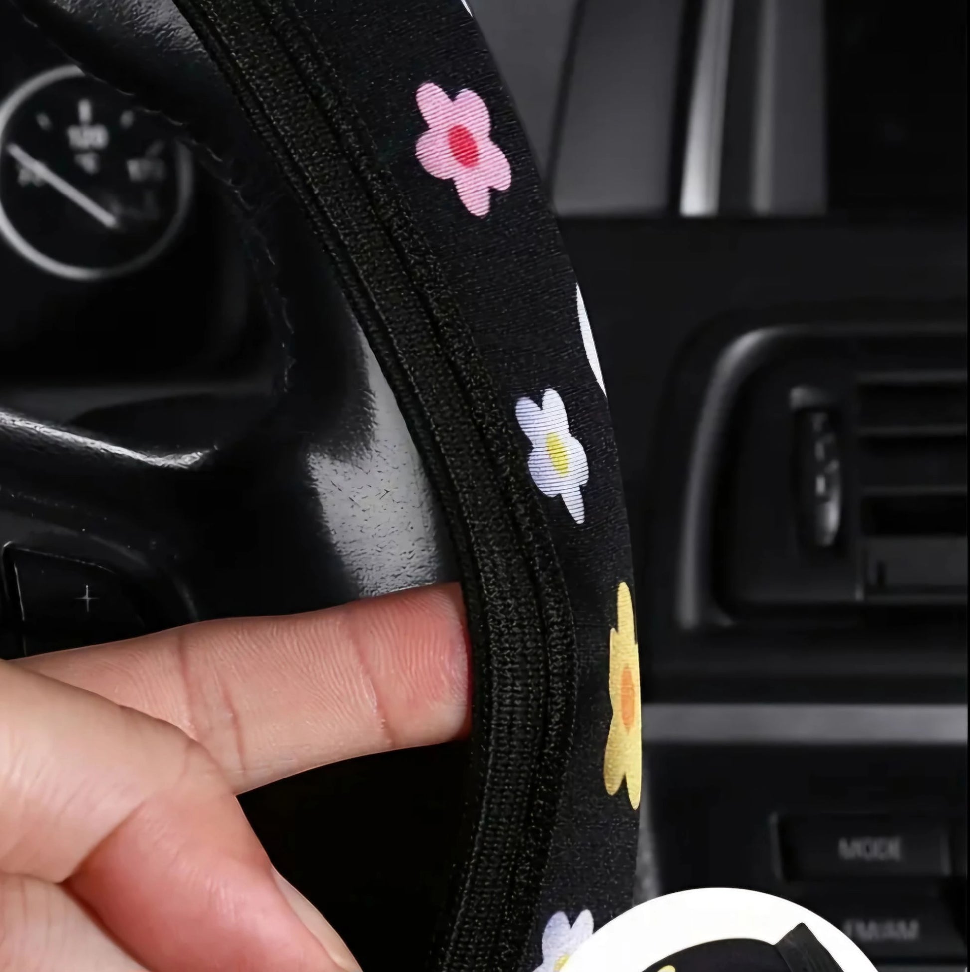 Donnez un look unique et personnalisé à votre véhicule avec notre couvre-volant décoré de fleurs colorées !
