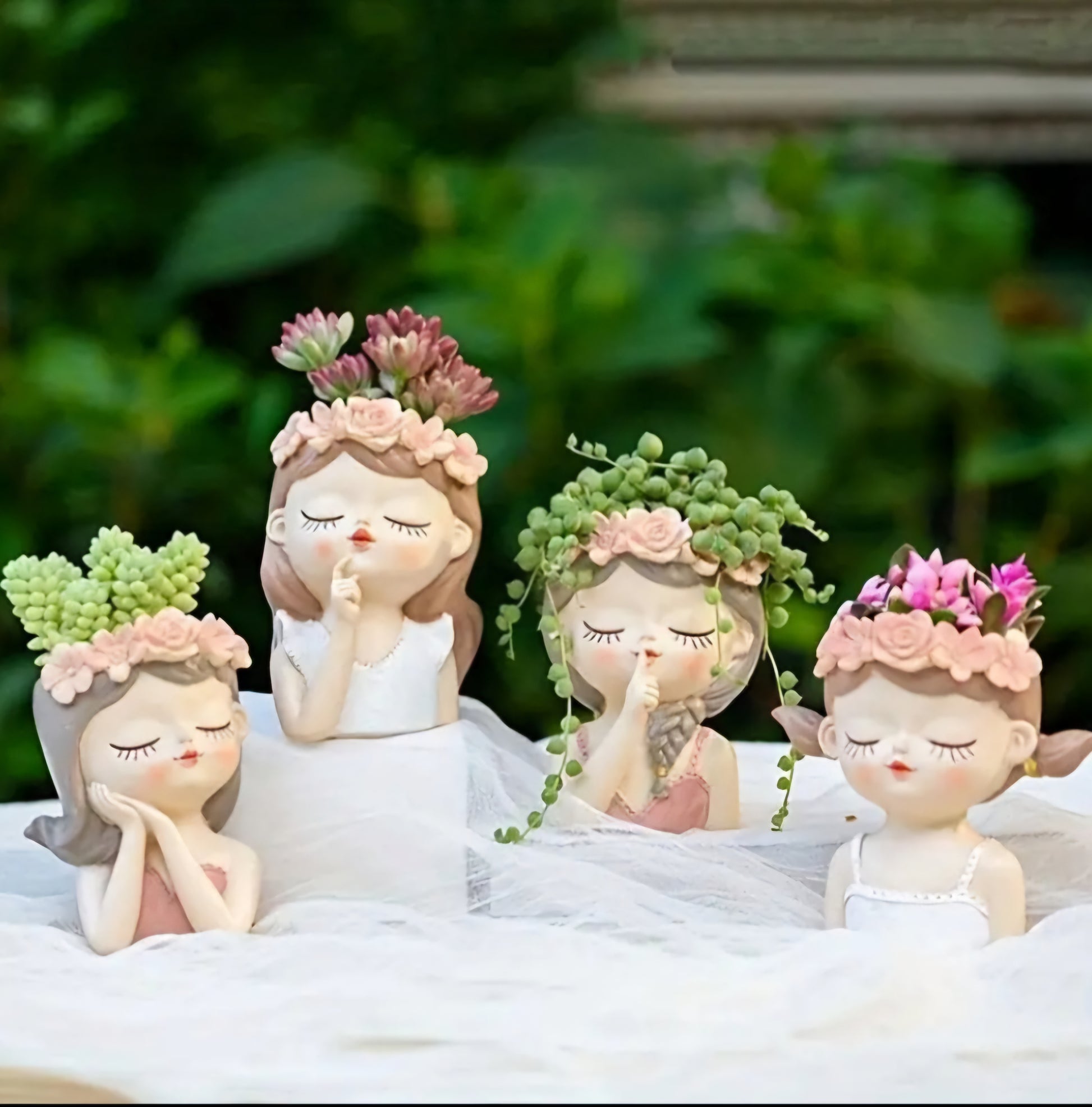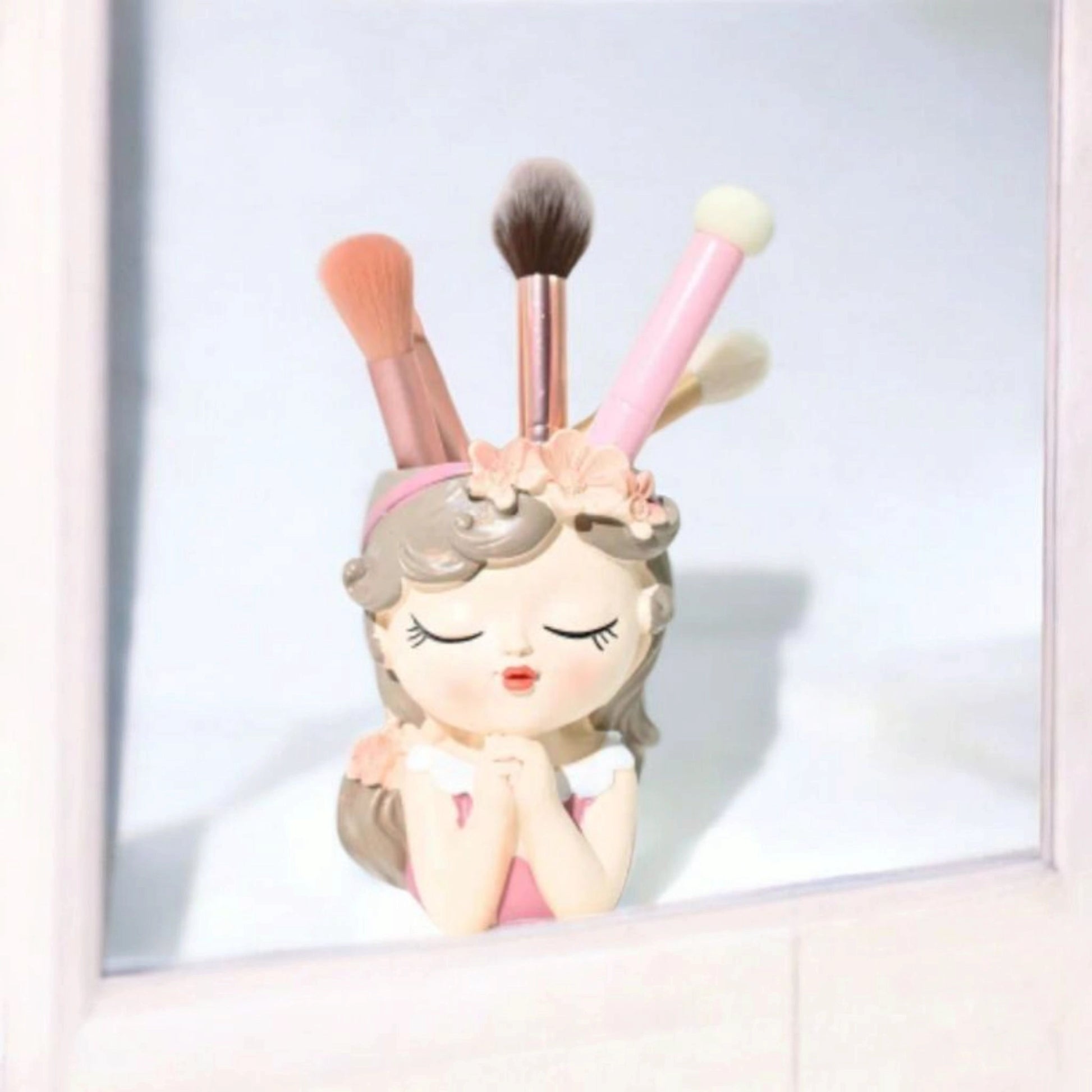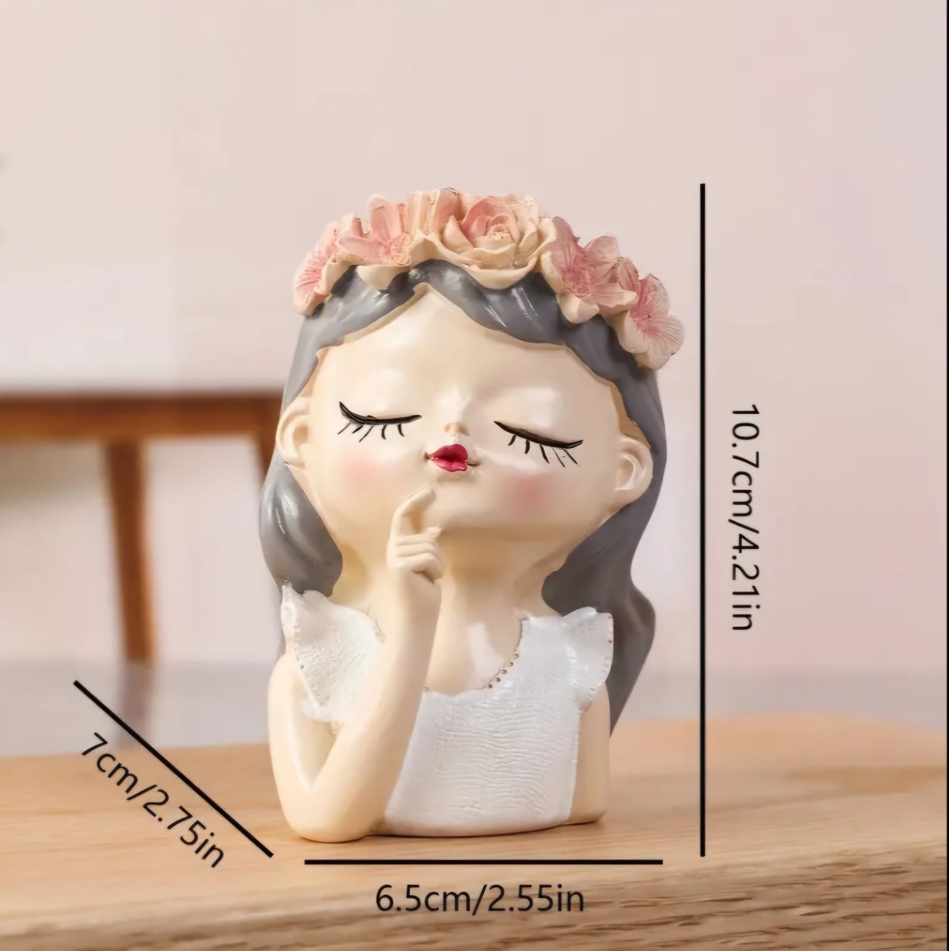 Conçu en forme d'un visage féminin rêveur, il est orné d'une couronne de fleurs délicates et de joues subtilement rosées.