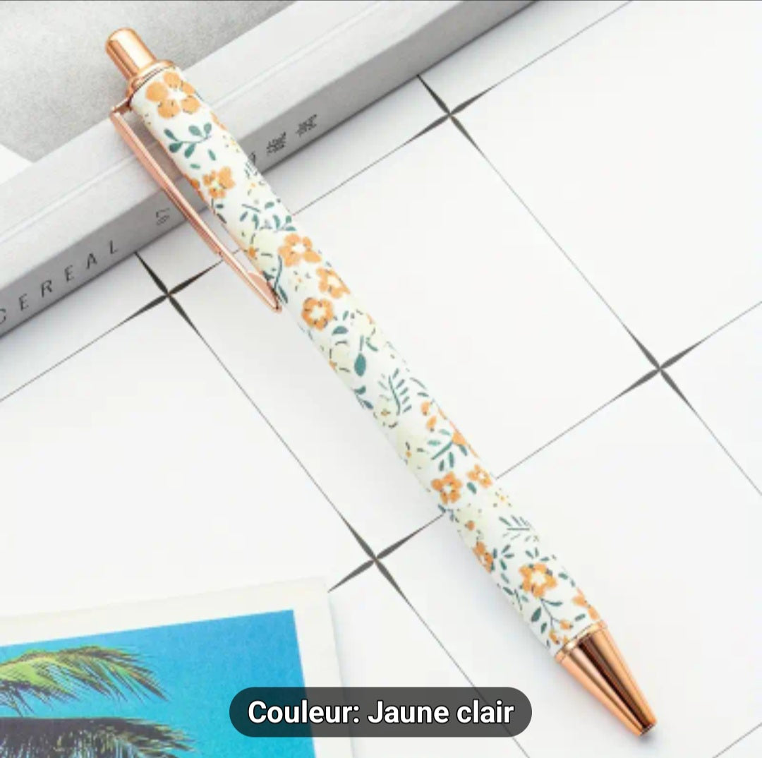 STYLO JAUNE CLAIR en métal inoxydable à encre noire.